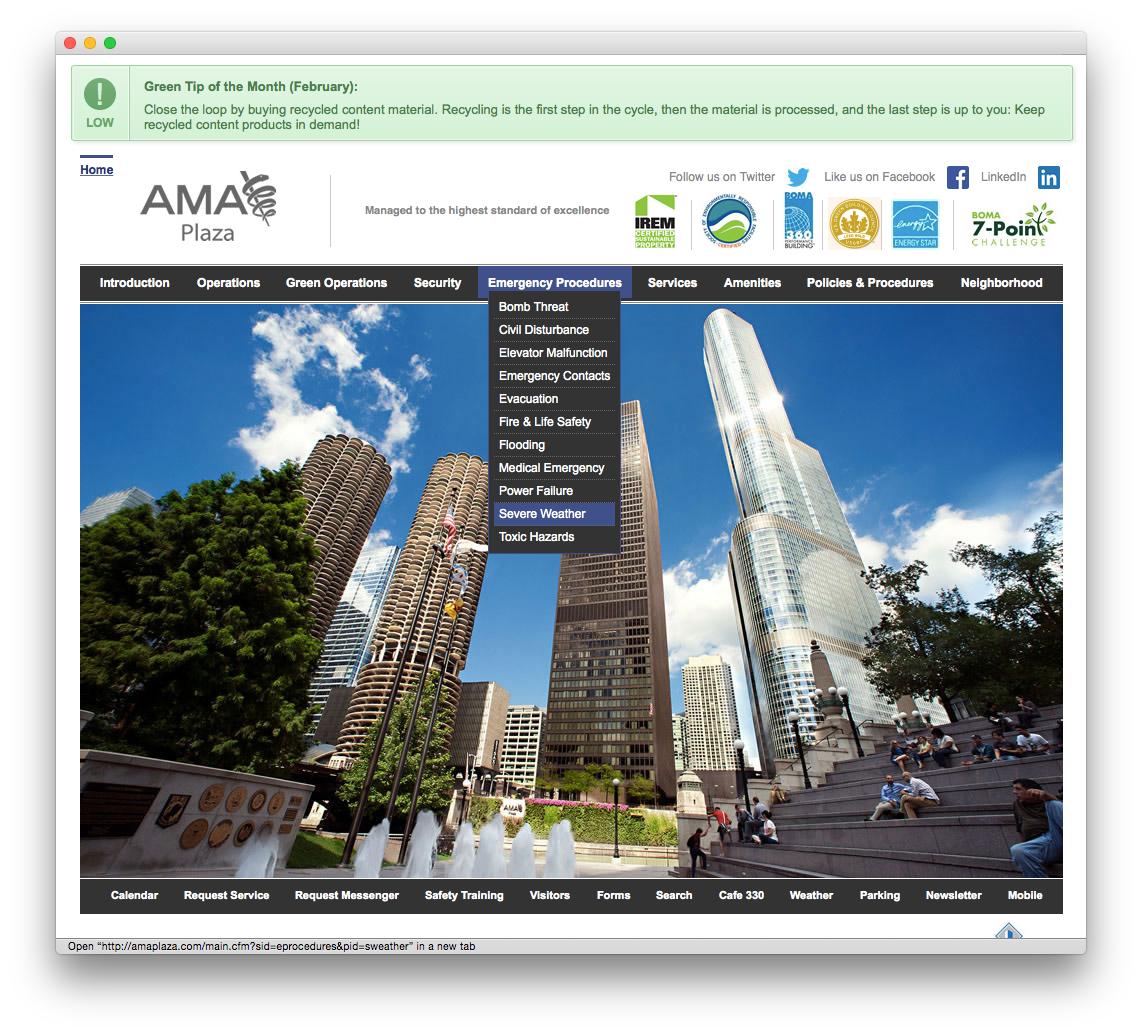 Photo: AMA Plaza’s Electronic Tenant® Portal including Green Tip via ETS’ Instant Alert app.