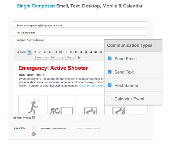 The NEW Communications Application combines multiple ways to send communications through one, streamlined system. With the recent upgrade, the app provides professional grade communication capabilities at your fingertips. It’s an easy way to get information out to your property contacts via Email, Portal Banner, Text Message or Calendar with one click.