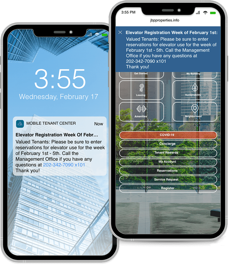 - Centralized information Portal: for any and all property information, including safety protocols, cleaning and sanitization practices and real-time information. Consolidate ALL tenant tech/resources (not just ETS apps) in one place.